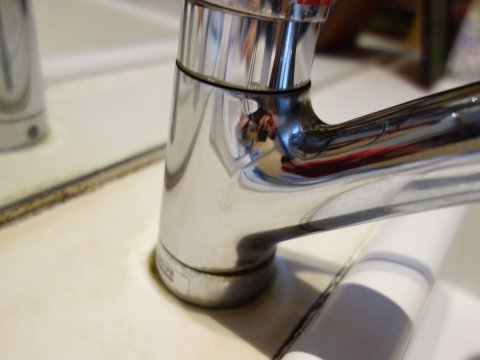 洗面所の蛇口と接続部分の人工大理石が汚れているのか非常に気になります!